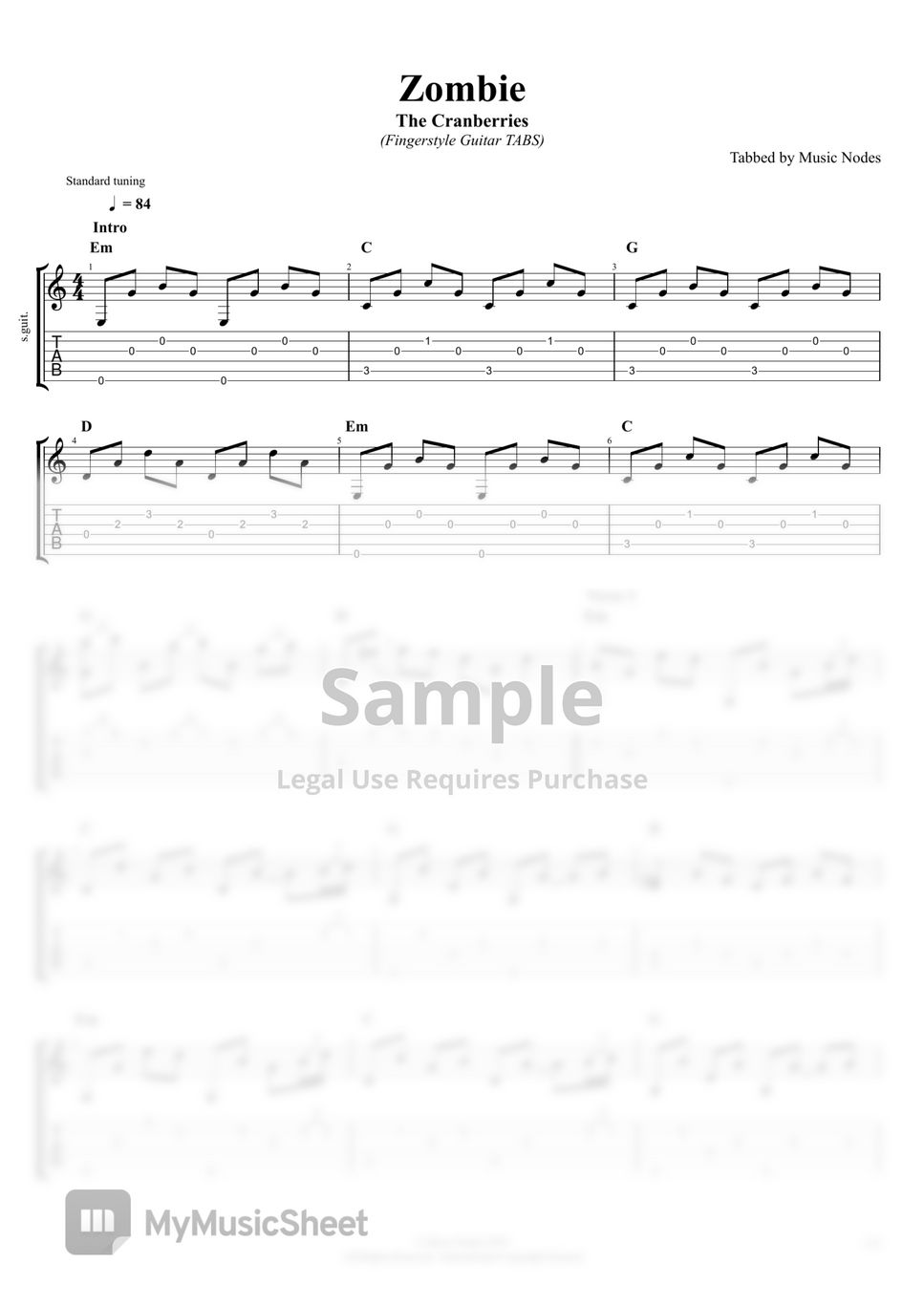 The Cranberries (Fingerstyle Guitar Tabs Cover) Zombie Sheets by